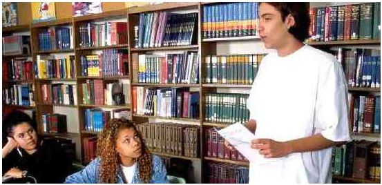 در عکس بالا سه دانشجو در مورد یک پروژه دانشجویی صحبت می کنند. پسر فهرست کارهایی که باید توسط دو نفر دیگر انجام شود را مشخص می کند. او در اینجا بر دو نفر دیگر take over شده است.